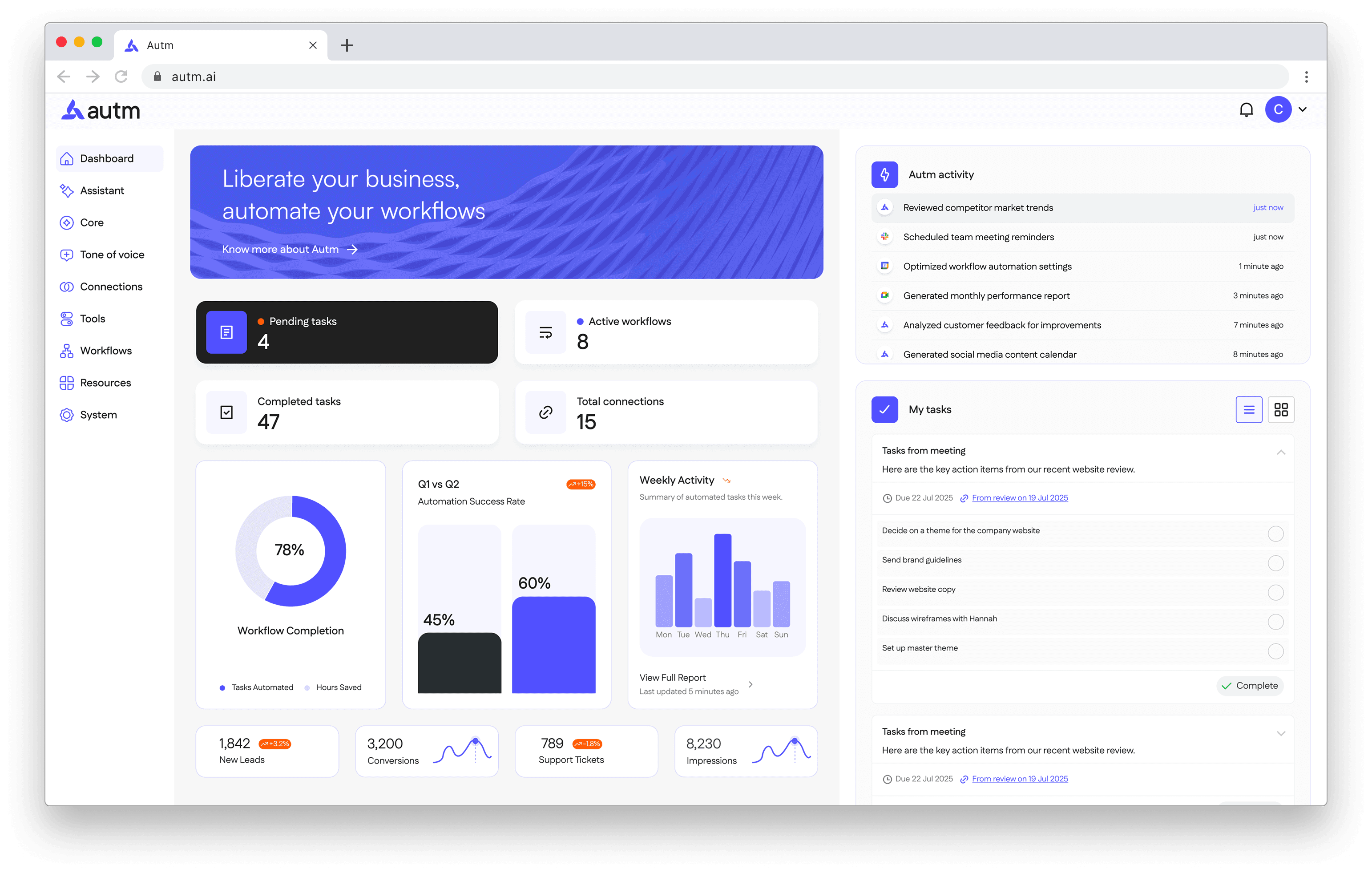 Autm quietly handles your admin and orchestrates your operations, so you can work with clarity and calm.